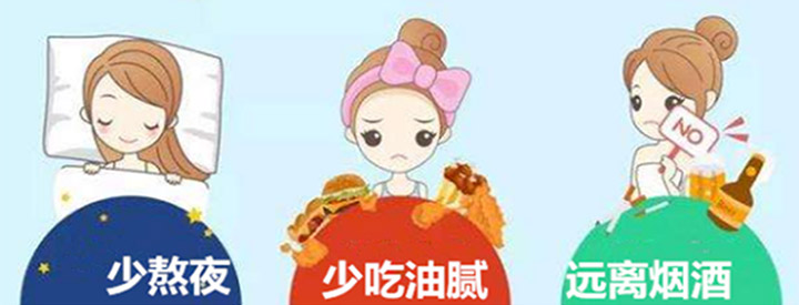 早点睡觉,少吃油腻,远离烟酒