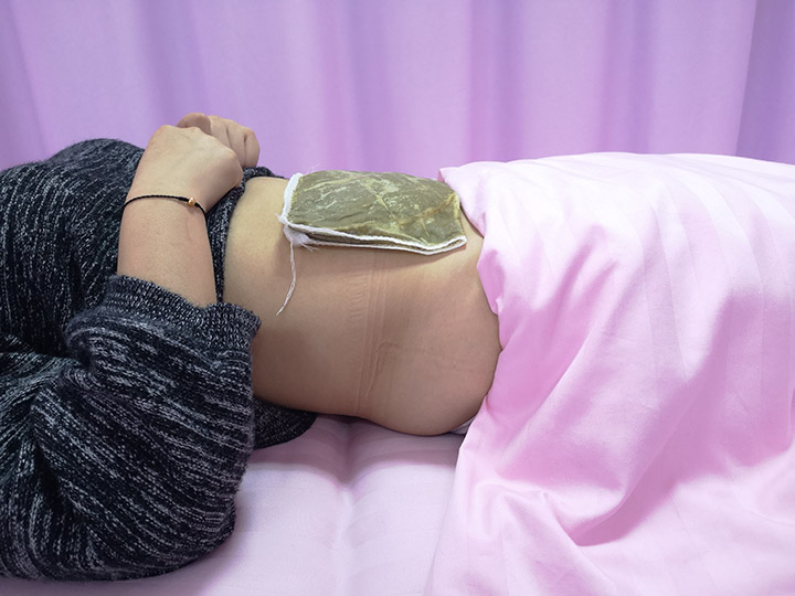 中药封包治疗:通过辩证论治,自制中药封包12号方、2号方,将配置好的中药置入奄包中,再通过奄包的热蒸汽使局部的毛细血管扩张,血液循环加速,并通过热蒸汽促使奄包内中药离子渗透到患者病痛所在,具有温经通络、调和气血、祛湿散寒等功效,从而达到治疗女性盆腔炎性疾病的目的。